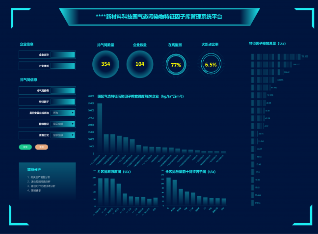 為摸清某化工園企業(yè)排放的廢氣種類、來源、分布等污染情況,對園區(qū)內(nèi)100多家化工企業(yè)共300多個(gè)有組織排氣筒的排放情況進(jìn)行系統(tǒng)化摸排分析及采樣監(jiān)測,真實(shí)地反映廢氣排放的來源裝置、工藝、排放環(huán)節(jié)、處理設(shè)施等關(guān)鍵信息,明確各企業(yè)有組織廢氣污染物的排放特征,準(zhǔn)確、全面地為每個(gè)排氣筒排放物質(zhì)清單和特征因子建檔。通過建立因子庫大數(shù)據(jù)平臺(tái),實(shí)現(xiàn)了排放清單一張表、排放總量一本賬、排放分布一張圖,有效指導(dǎo)大氣網(wǎng)格點(diǎn)監(jiān)控系統(tǒng)建設(shè)、強(qiáng)化大氣監(jiān)控力度、提高環(huán)境監(jiān)管水平。